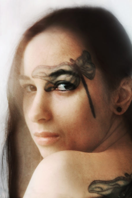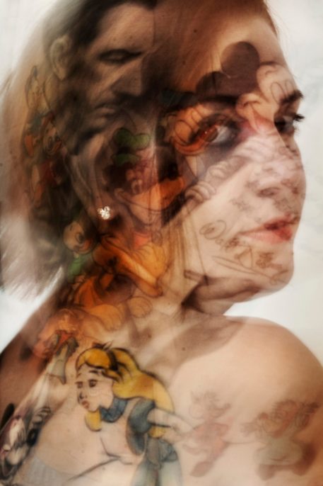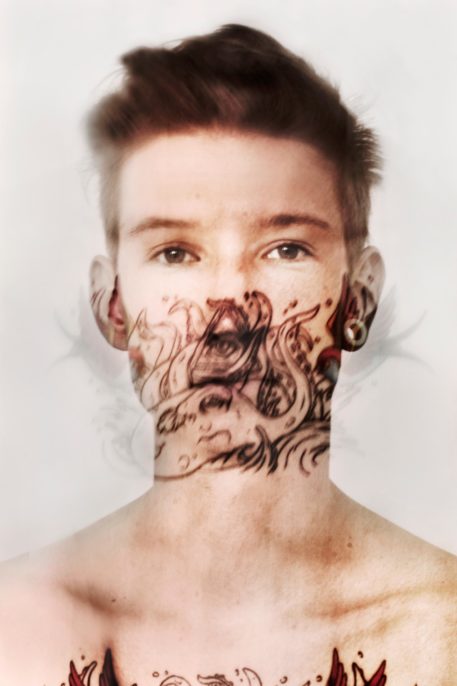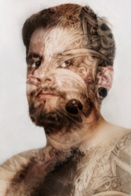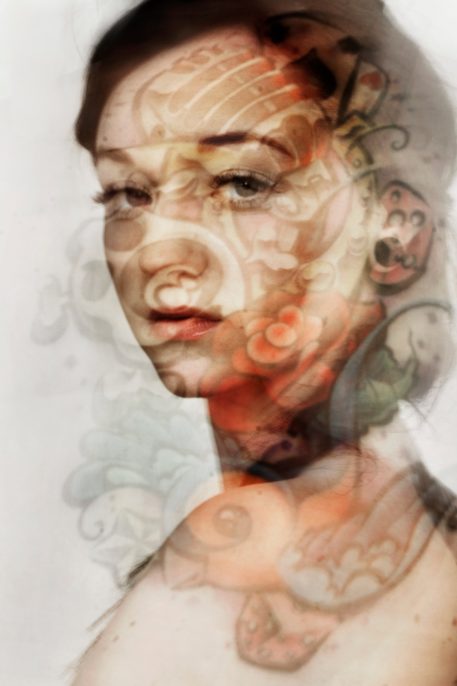 painful and the pattern remains on the skin forever. For me, tattoos are the evidences of their „owners” identities. Like special trademarks people use to express themselves in many ways (their fascinations, interests, emotions and esthetic tastes). Tattooing will go hand in hand with the desire to be unique and to stand out, which is a part of the contemporary cult of individualism. You can treat the human body as „life story” or as a blank canvas to fill. Regardless of motivation, a tattoo becomes an integral part of one’s body, showing their personality. Therefore, I decided to combine the portraits and tattoos on my photographs. All were created during few seconds of exposure and the effect of diffusion naturally shows how these two evidences of identity are mixed together.